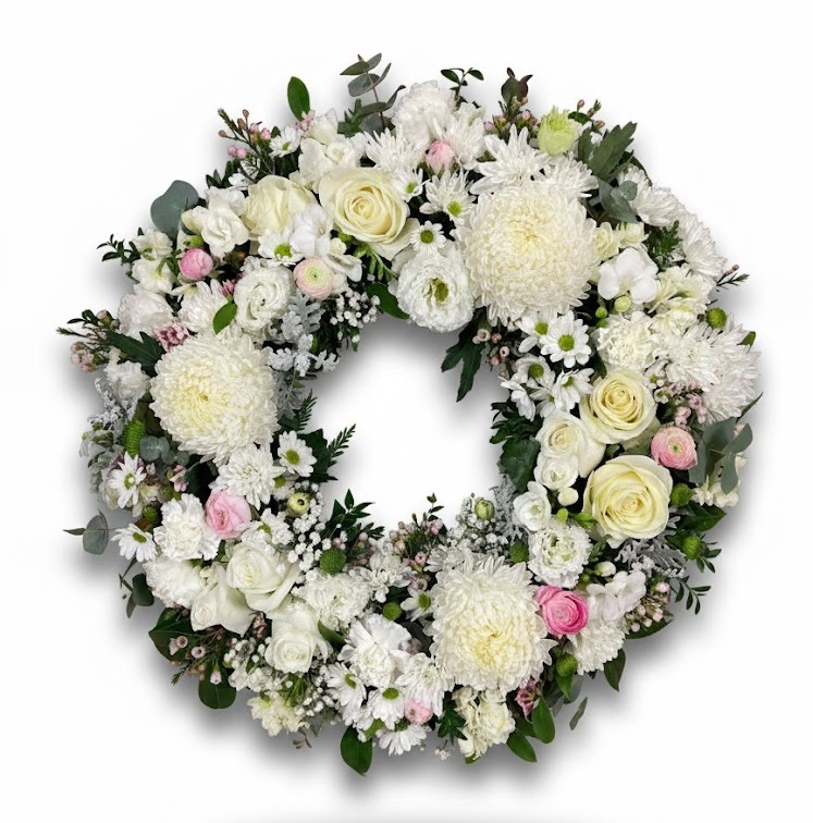 We can create a remembrance wreath with beautiful mix of seasonal flowers in loving memory of the loved one.